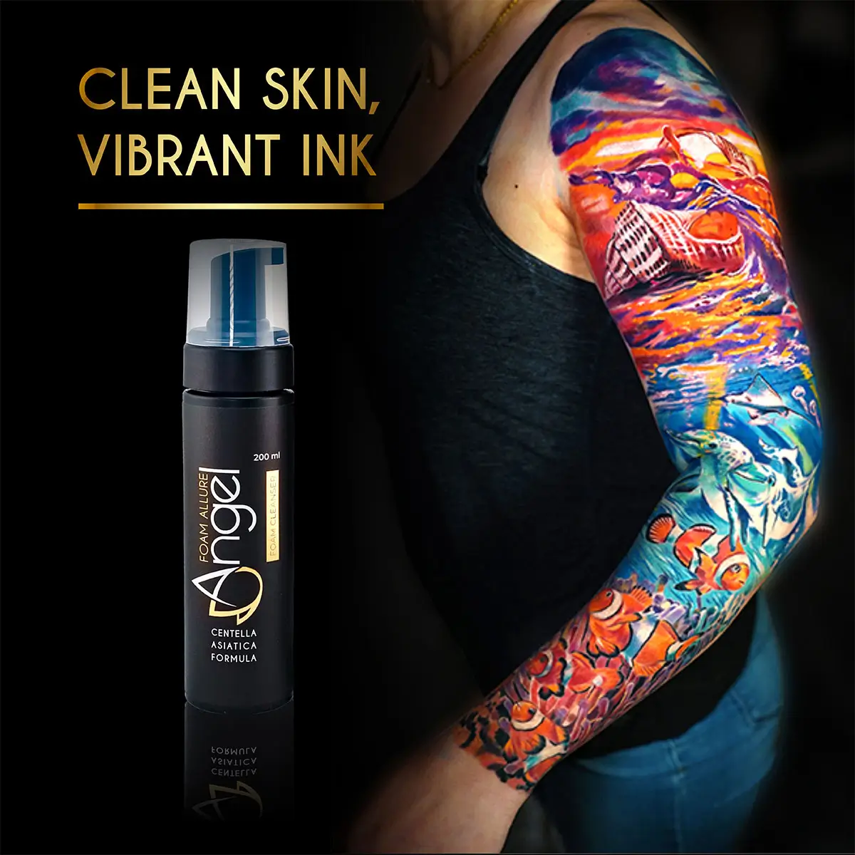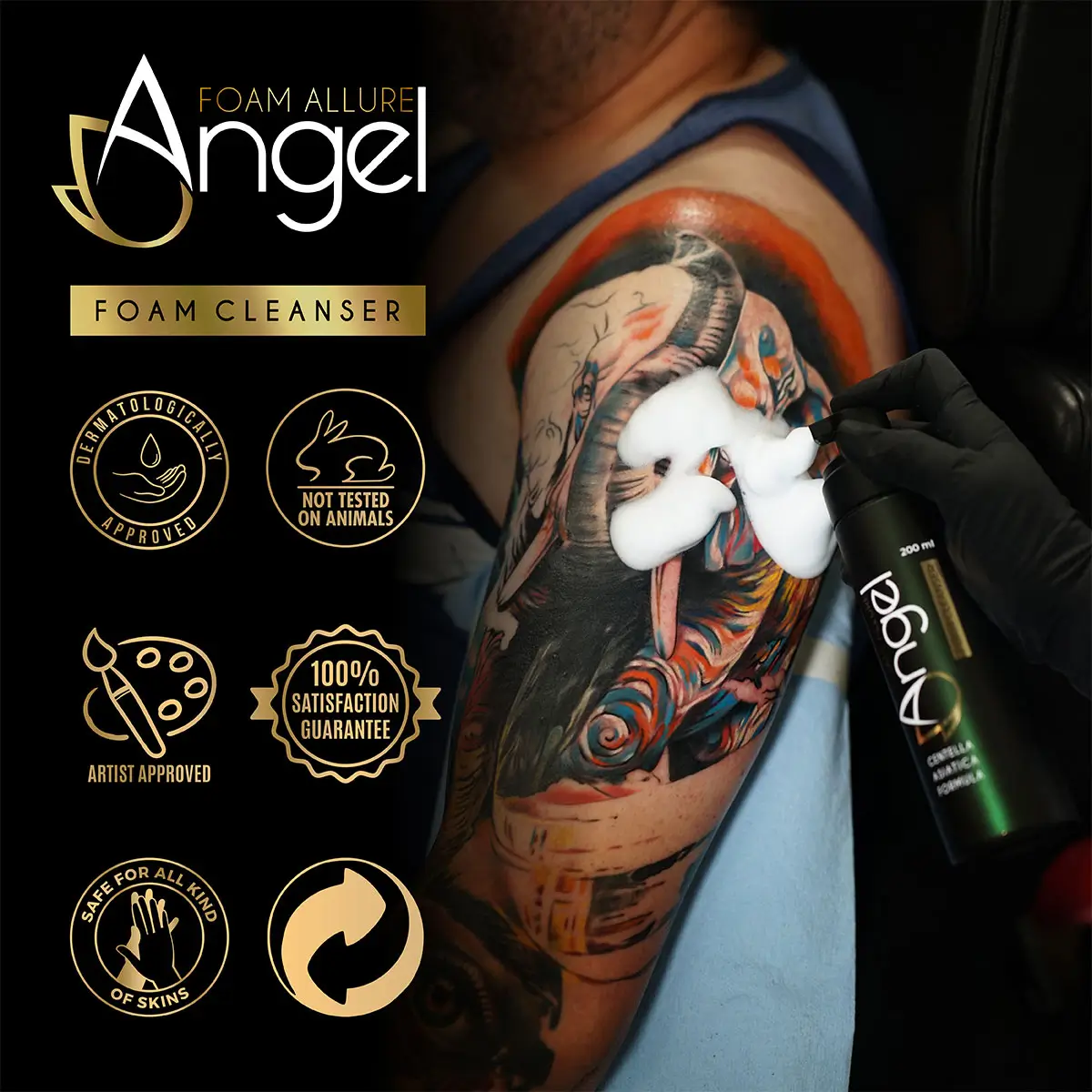 Angel Foam Allure 200 ml, gives fresh ink a gentle, reliable clean. So your skin stays fresh during daily aftercare. As a result, your tattoo can heal in a cleaner routine.